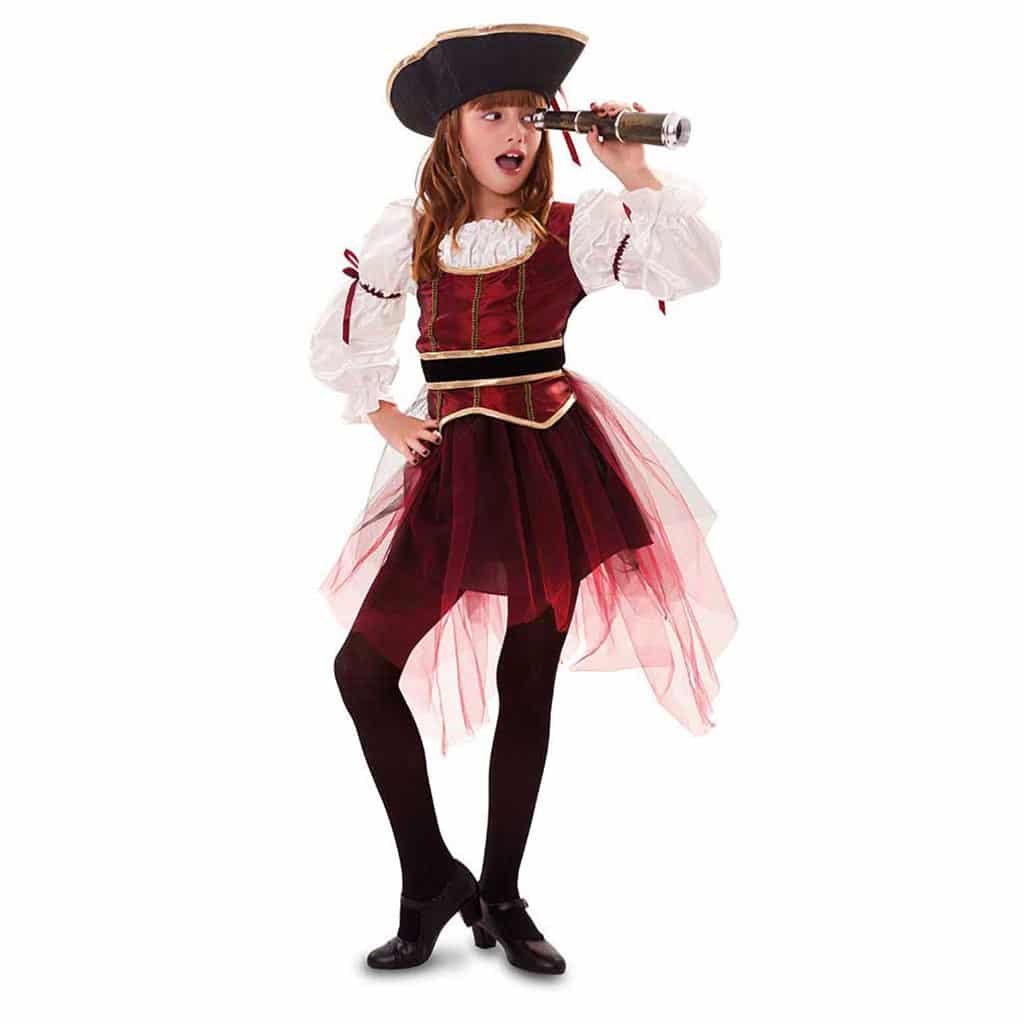 Fato de pirata para menina que incluí um bonito vestido e chapéu. Um fato de corsária para pequenas vaidosas que querem desfrutar do Carnaval mais louco mantendo o seu estilo galanteador e elegante. Com este fato de pirata já estais prontas para assistir a qualquer festa de máscaras ou espectáculos escolares.