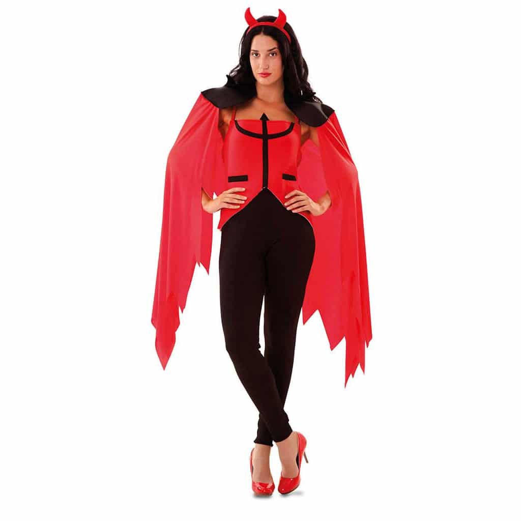 O que vamos dizer dos disfarces de demónio para adulto que ainda não tenha sido dito? Disfarces clássicos para Halloween para mulher que ano após ano aparecem, isso sim, em diferentes modelos cada vez mais actualizados. Como o fato de demónia com capa, um disfarce de diabinha mulher muito elegante.