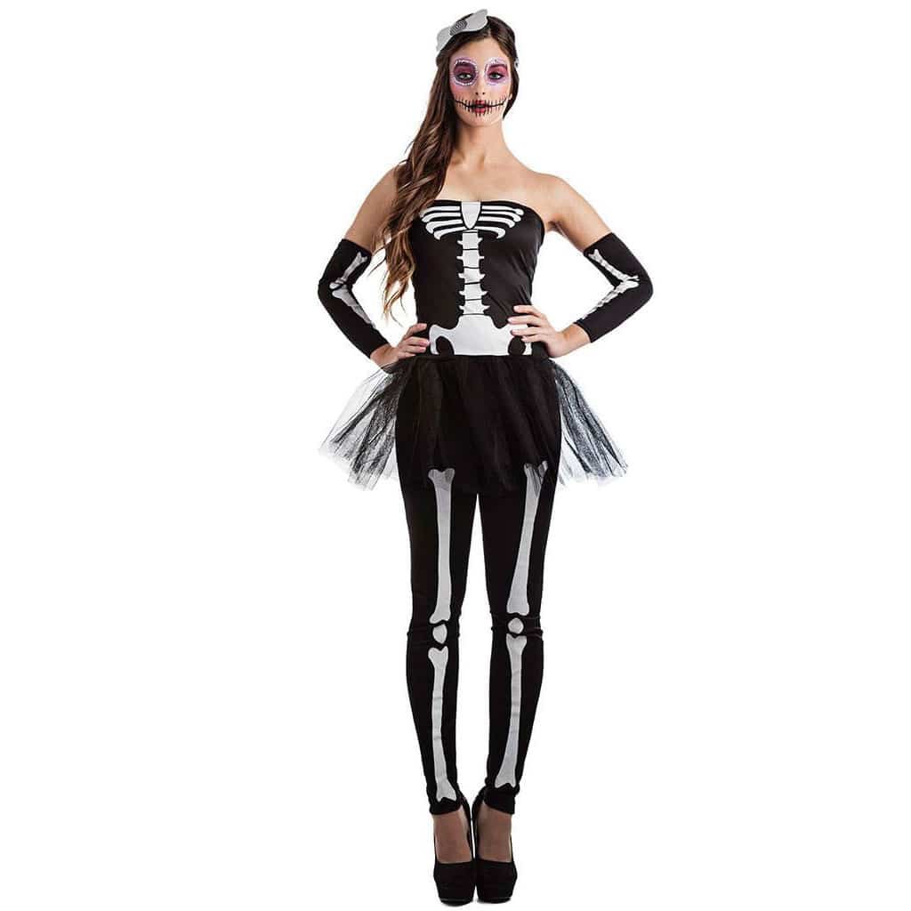 Fato Esqueleto Tútú T. S ao melhor preço, o disfarce é composto por Top com Tutú, Calças, mangas e Toucado para Cabeça para tamanho S encontre em nossa loja o fato que você está procurando temos mais de 8000 fatos de Carnaval, Halloween e disfarces para Festas, descubra-os.