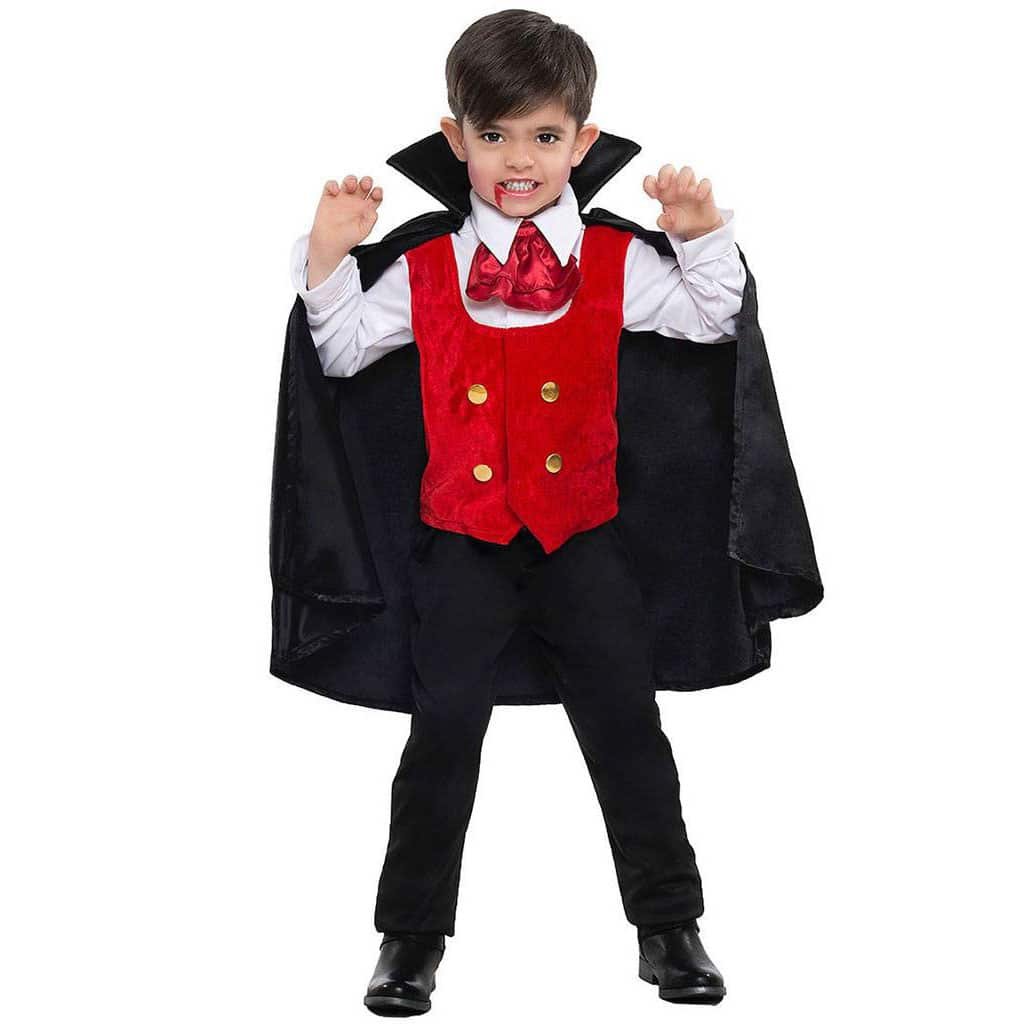Fato Vampiro Menino 3-4 Anos ao melhor preço, o disfarce é composto por Camisa com Colete, Calças, Capa, Peitilho para Criança 3-4 Anos encontre em nossa loja o fato que você está procurando temos mais de 8000 fatos de Carnaval, Halloween e disfarces para Festas, descubra-os.